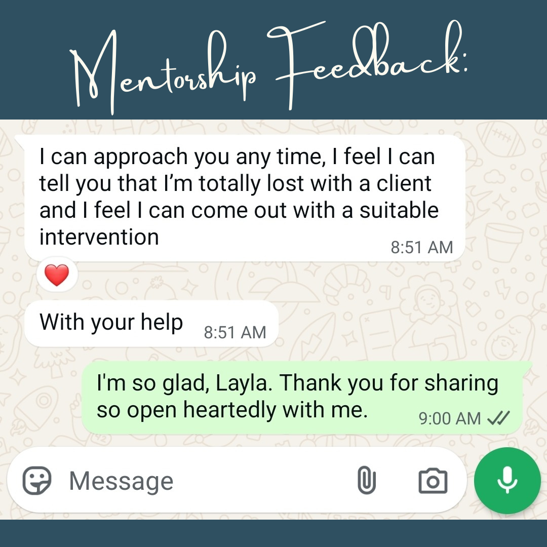 You are an incredible mentor, OT and person. Thank you so much for all of your help thta you have given me over the past year. You have been a huge help and a huge part of why I felt like I could stay at [my job]...